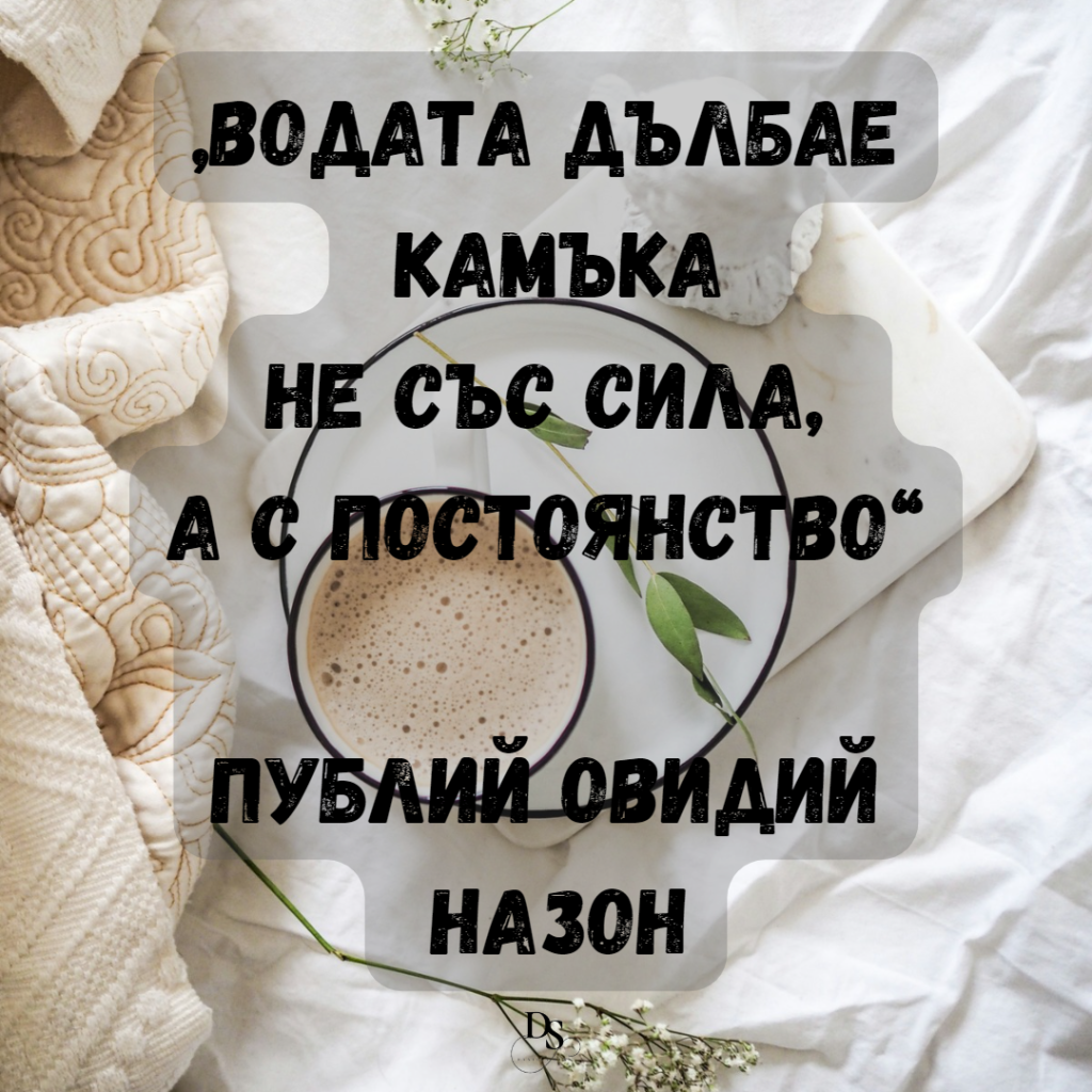 “Посей мисъл и ще пожънеш действие. Посей действие и ще пожънеш навик. Посей навик и ще пожънеш характер. Посей характер и ще пожънеш съдбата си.”